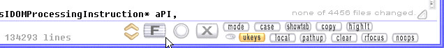 One step more extreme is the Auto Filter: by right-clicking on the "F" button, it turns into "A", as in the example at the top. Now, whenever you type a word, filtering is activated instantly, showing only the result lines. Now, to read a text part of interest, just click into one of the result lines. In the example above, we click on "class nsIContentSerializer", so this text area is unfolded:
