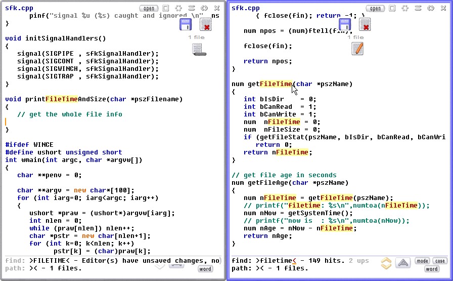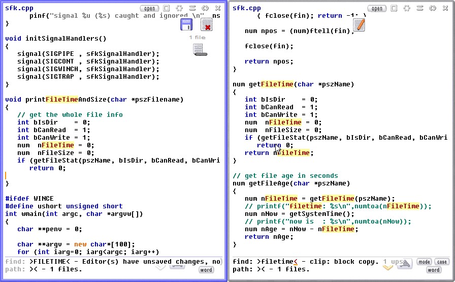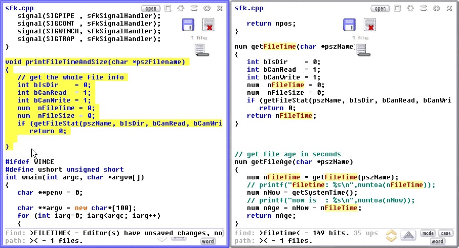 - in the left view, keep SHIFT pressed, mark the whole text block by cursor