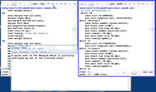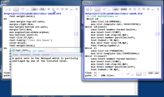 How to create multiple views by one click, allowing to view the same text in two windows side by side. How to fly over all text files of a folder in 2 or 3 windows