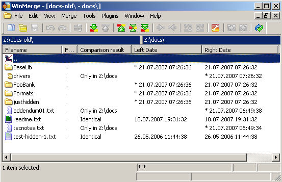comparing directory tree differences winmerge is great for comparing two files, but when i try to compare whole directories this way: winmerge docs-old docsi do get some overview:
