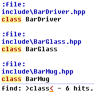 You see both the names of files where the word was found, as well as the actual text lines with the word. |