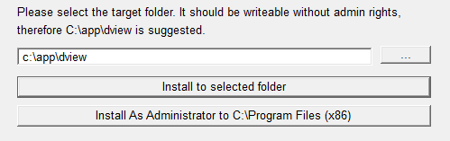 For company admins, there is also an option to install Depeche View Pro to the Microsoft standard location C:\Program Files (x86). This option requires admin rights. Under Windows 7/8, the installer will require two additional clicks. Installing as admin ist just an option, but not required for companies. |