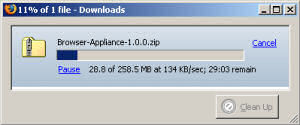 3. Now all you need is a machine image to run. The VMWare site contains a 260 MB Browser Appliance, which is an Ubuntu Linux with pre-installed Firefox browser.