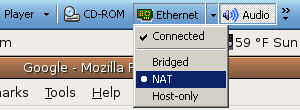 7. Make sure your VMWare ethernet settings are "NAT" (network address translation), and that connected is set. Then you should be able to surf with the given Firefox instantly.