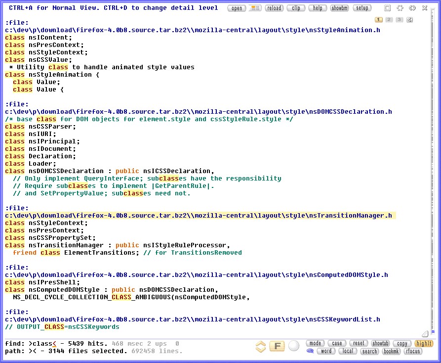 Search As You Type - Instantly.Just load all text files of a folder, then type a word. It will be searched instantly across all loaded files. If you try the Depeche View Pro Demo, you will see that a single word search across 3000 files normally takes less than one second. The search is so fast because all text is kept in the computer's main memory. Furthermore, Depeche View comes with a powerful built-in search engine that can build it's search database on the fly while text is loaded. Forget about hour-long index creation, as it is the case with other search tools. Just load any text from any folder, and you can fly over those contents instantly, faster than with any other text editor, search tool or IDE. You may also search words that you read on screen just by clicking on them. Read more on the main product page. |