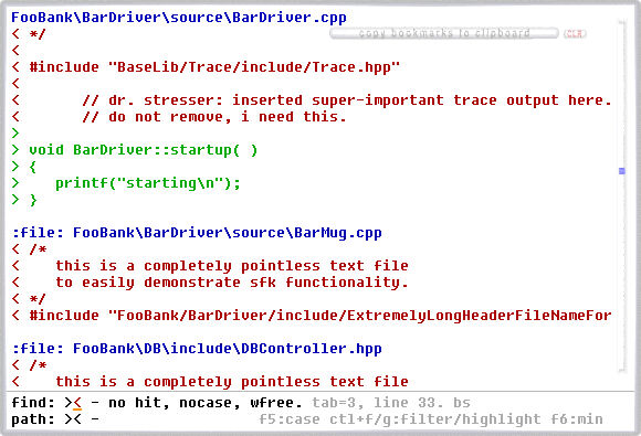 <    to easily demonstrate sfk functionality.